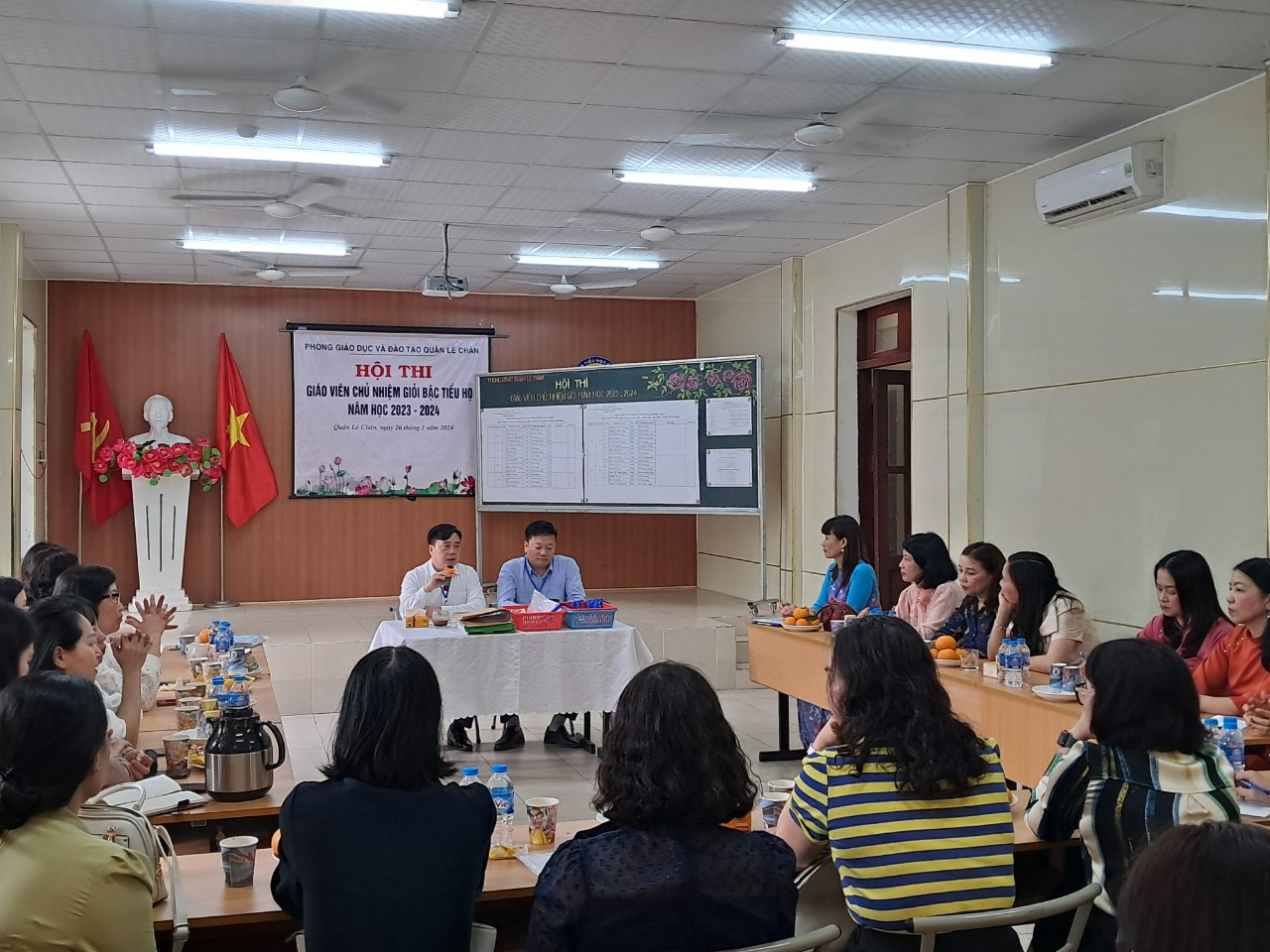 Thực hiện Kế hoạch số 03/KH-PGDĐT ngày 16/01/2024 của Phòng Giáo dục và Đào tạo quận Lê Chân về kế hoạch Hội thi Giáo viên chủ nhiệm giỏi - Cấp quận - Bậc tiểu học - Năm học 2023-2024, Công văn số 58/ PGDĐT-BCĐ ngày 27/02/2024 của Ban Tổ chức Hội thi về việc hướng dẫn tổ chức hội thi, từ ngày 26 đến 28/3/2024, Phòng Giáo dục và Đào tạo quận tổ chức Hội thi Giáo viên chủ nhiệm giỏi - Cấp quận - Bậc tiểu học - Năm học 2023-2024.