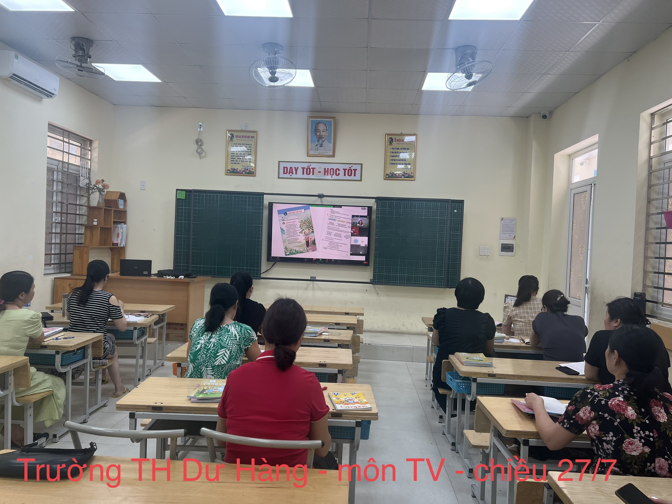 Thực hiện KH số 80/KH-SGD về tập huấn bồi dưỡng giáo viên sử dụng SGK lớp 4 năm học 2023-2024, từ ngày 24/7/2023 đến ngày 28/7/2023 đội ngũ giáo viên dự kiến giảng dạy lớp 4, các tổ trưởng chuyên môn trường Tiểu học Dư Hàng đã tích cực tham gia tập huấn sử dụng SGK lớp 4 với tất cả môn học: Toán, Tiếng Việt, Đạo đức, Khoa học, Lịch sử - Địa lí, Công nghệ , Tin học, Âm nhạc, GDTC, Mỹ thuật, Tiếng Anh.