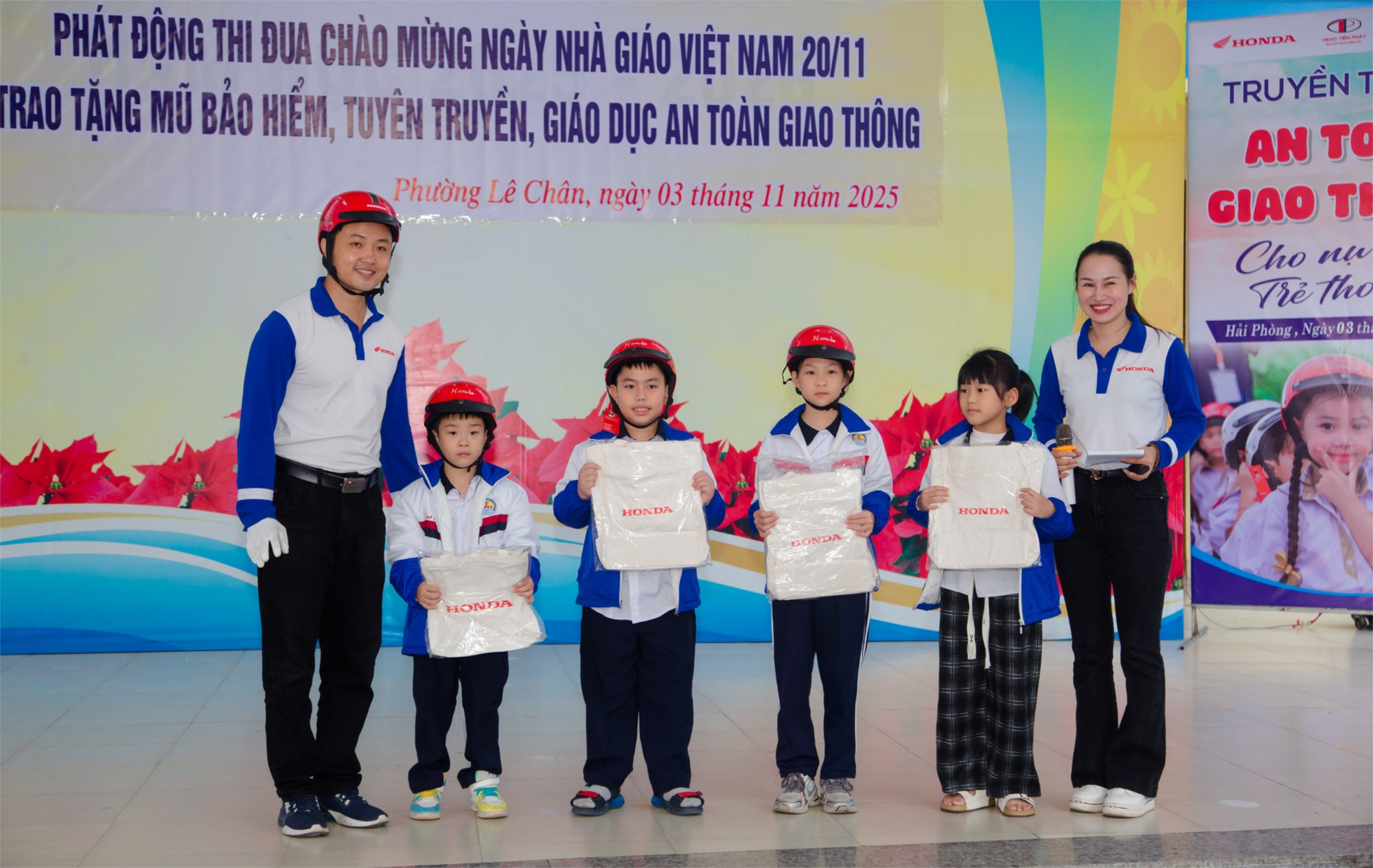 Thực hiện Kế hoạch số 172/KH-UBATGTQG ngày 08/10/2025 của Ủy ban An toàn giao thông Quốc gia, tiếp tục duy trì và lan tỏa phong trào “Giữ trọn ước mơ” – trao tặng mũ bảo hiểm đạt chuẩn cho học sinh lớp 1 trên phạm vi toàn quốc, Công ty Honda Việt Nam đã phối hợp với Ủy ban An toàn Giao thông Quốc gia và Bộ Giáo dục & Đào tạo để trao tặng 1.85 triệu mũ bảo hiểm đạt chuẩn cho học sinh lớp Một trên toàn quốc trong năm học 2025-2026. Sáng nay, tại trường Tiểu học Dư Hàng, Hệ thống HEAD Tiến Phát đại diện cho Honda Việt Nam trao tặng 231 mũ bảo hiểm cho học sinh lớp 1.
