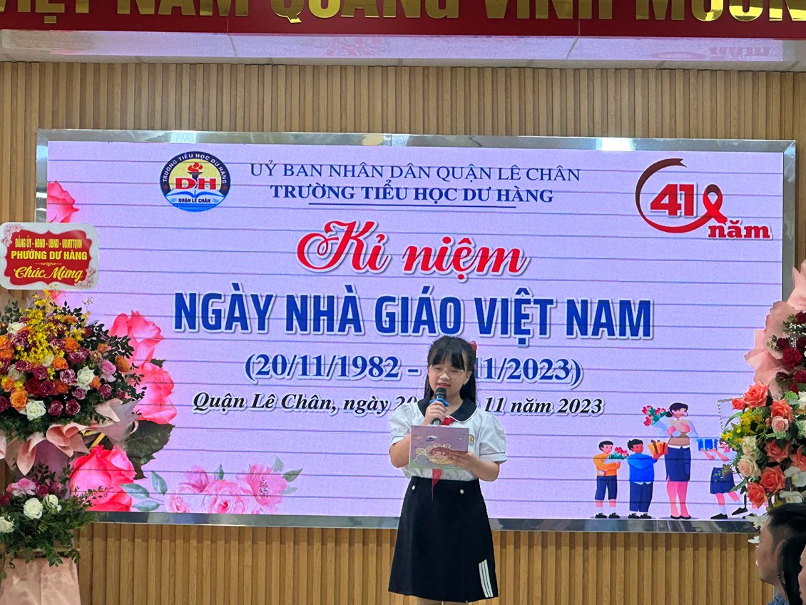 Hoà chung không khí vui tươi, phấn khởi của ngành giáo dục trong cả nước kỷ niệm 41 năm ngày Nhà giáo Việt Nam (20/11/ 1982 – 20/11/2023), sáng ngày 20/11/2023, trường Tiểu học Dư Hàng trang trọng tổ chức lễ kỉ niệm 41 năm ngày Nhà giáo Việt Nam.