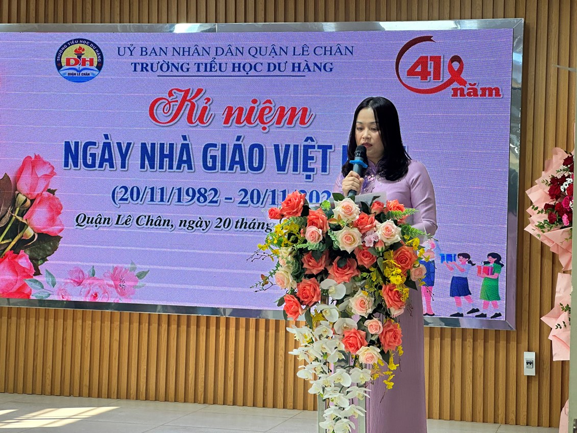Trong diễn văn chào mừng, nhà giáo Lê Thị Thu Hương - Bí thư Chi bộ - Hiệu trưởng nhà trường đã tự hào ôn lại truyền thống tôn sư trọng đạo của dân tộc, nhận định những thành tích và vị thế của nhà trường; tri ân thế hệ các Nhà giáo đi trước, biểu dương thành tích các thầy cô trong năm học qua.