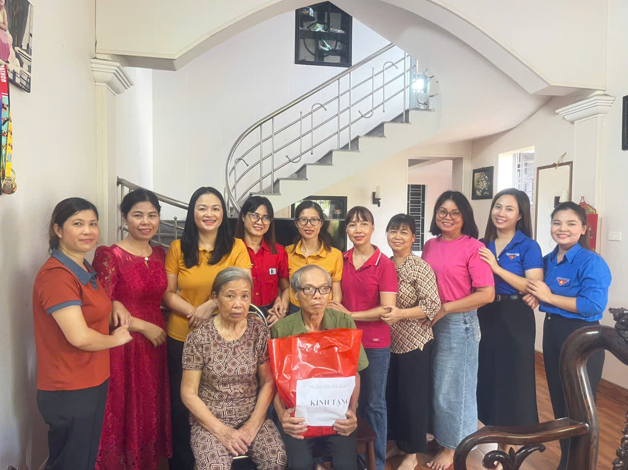 Ban giám hiệu nhà trường cùng đại diện các tổ khối, đoàn thanh niên đã đến thăm hỏi, động viên và trao những món quà ý nghĩa tới các gia đình. Những món quà tuy không lớn nhưng thể hiện tấm lòng tri ân sâu sắc, sự sẻ chia và động viên kịp thời của nhà trường. Các đồng chí trong đoàn đã ân cần thăm hỏi sức khỏe, chia sẻ về cuộc sống và lắng nghe những câu chuyện về sự hy sinh cao cả của thế hệ cha ông trong những những năm khói lửa. Các ông, các bác, các chú - những người đã trở về từ chiến trường năm xưa có dịp ôn lại những kỷ niệm của những năm tháng hào hùng và bi tráng, kể lại cho mọi người trong đoàn cùng nghe mà lòng rưng rưng xúc động. Trong không khí ấm áp, các ông các bác, các chú cùng gia đình cũng bày tỏ sự xúc động trước sự quan tâm của nhà trường, không quản đường xá xa xôi đã đến nhà thăm hỏi động viên. Các đồng chí trong đoàn cũng gửi lời tới các ông, các bác, các chú, chúc sức khỏe, bình an, luôn là điểm tựa tinh thần, là động lực cho cháu con an tâm công tác, rèn luyện và phấn đấu.