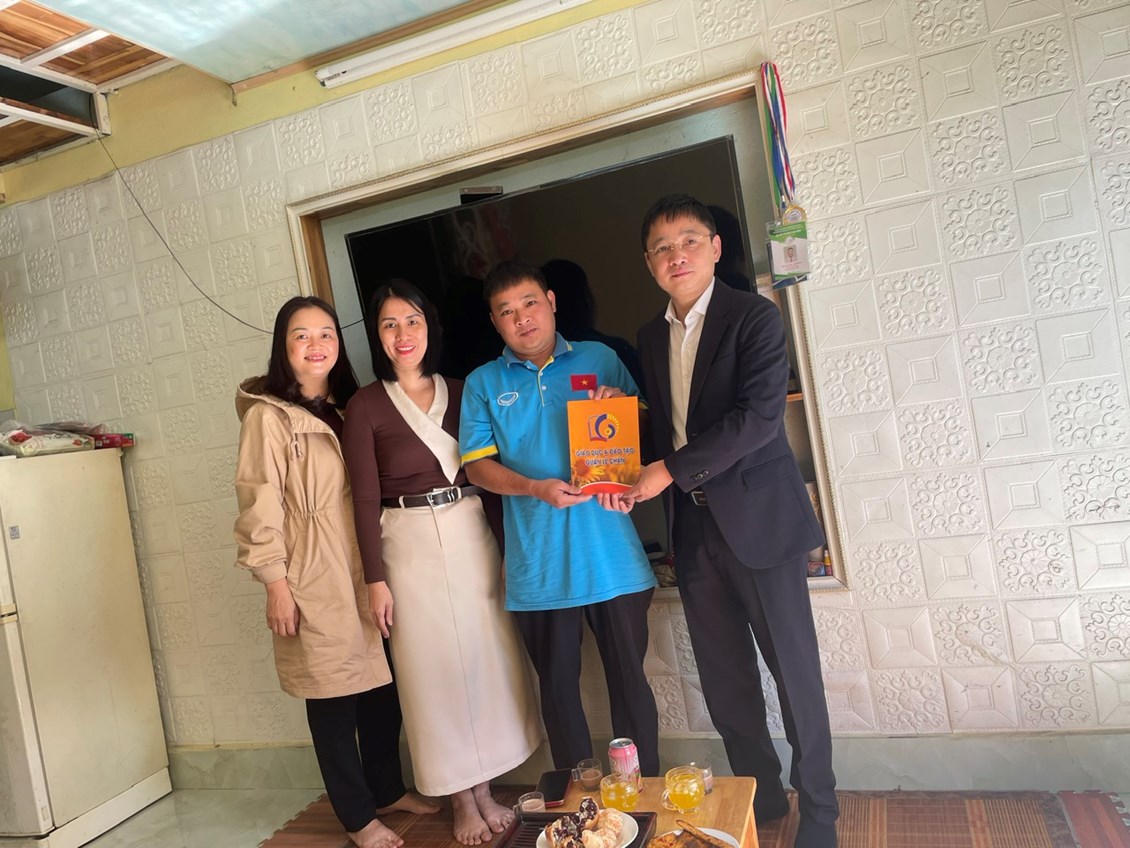 🌻 🌻 🌻 Nhân dịp kỷ niệm 41 năm ngày Nhà giáo Việt Nam (20/11/1982 - 20/11/2023), sáng ngày 18/11/2023, đồng chí Phạm Việt Anh - Phó Chủ tịch UBND quận Lê Chân đã đi thăm, chúc mừng thầy giáo Nguyễn Anh Dũng - giáo viên dạy môn Thể dục của Trường TH Dư Hàng. Cùng đi có đồng chí Bùi Thị Ngọc Quyên - Phó trưởng Phòng GD&ĐT quận. Đón đoàn có các trong BGH nhà trường.