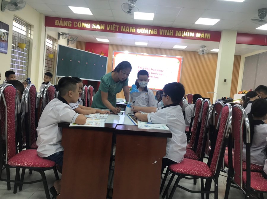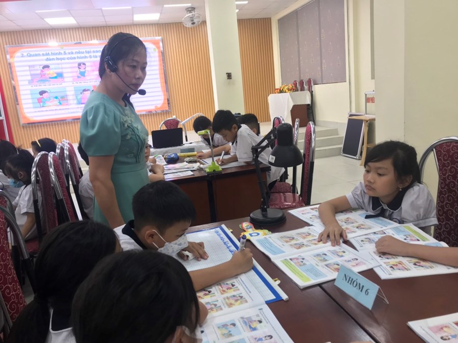 Trong tiết học, cô giáo đã linh hoạt vận dụng đa dạng các phương pháp và hình thức dạy học tích cực, khơi gợi hứng thú học tập của học sinh, giúp các em tích cực, chủ động nắm bắt kiến thức, thực hành vận dụng bài học. Học sinh được làm việc cá nhân, làm việc nhóm, thực hành trên đồ dùng nên rất hào hứng tương tác cùng cô và các bạn.