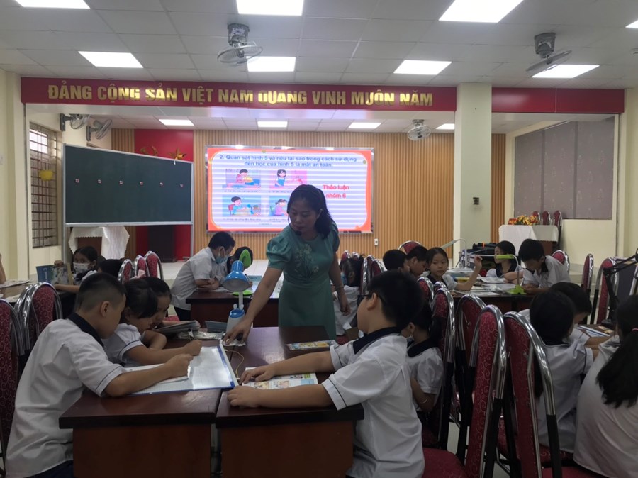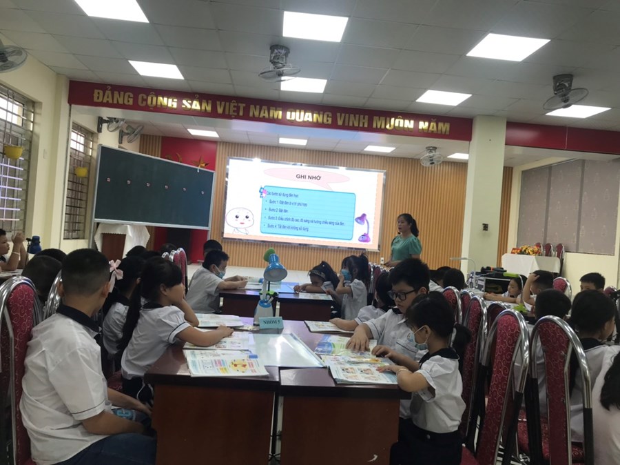 Cô giáo Nguyễn Thị Thu Hằng cùng các em học sinh lớp 3A5 đã thể hiện thành công tiết học qua bài “Sử dụng đèn học”.