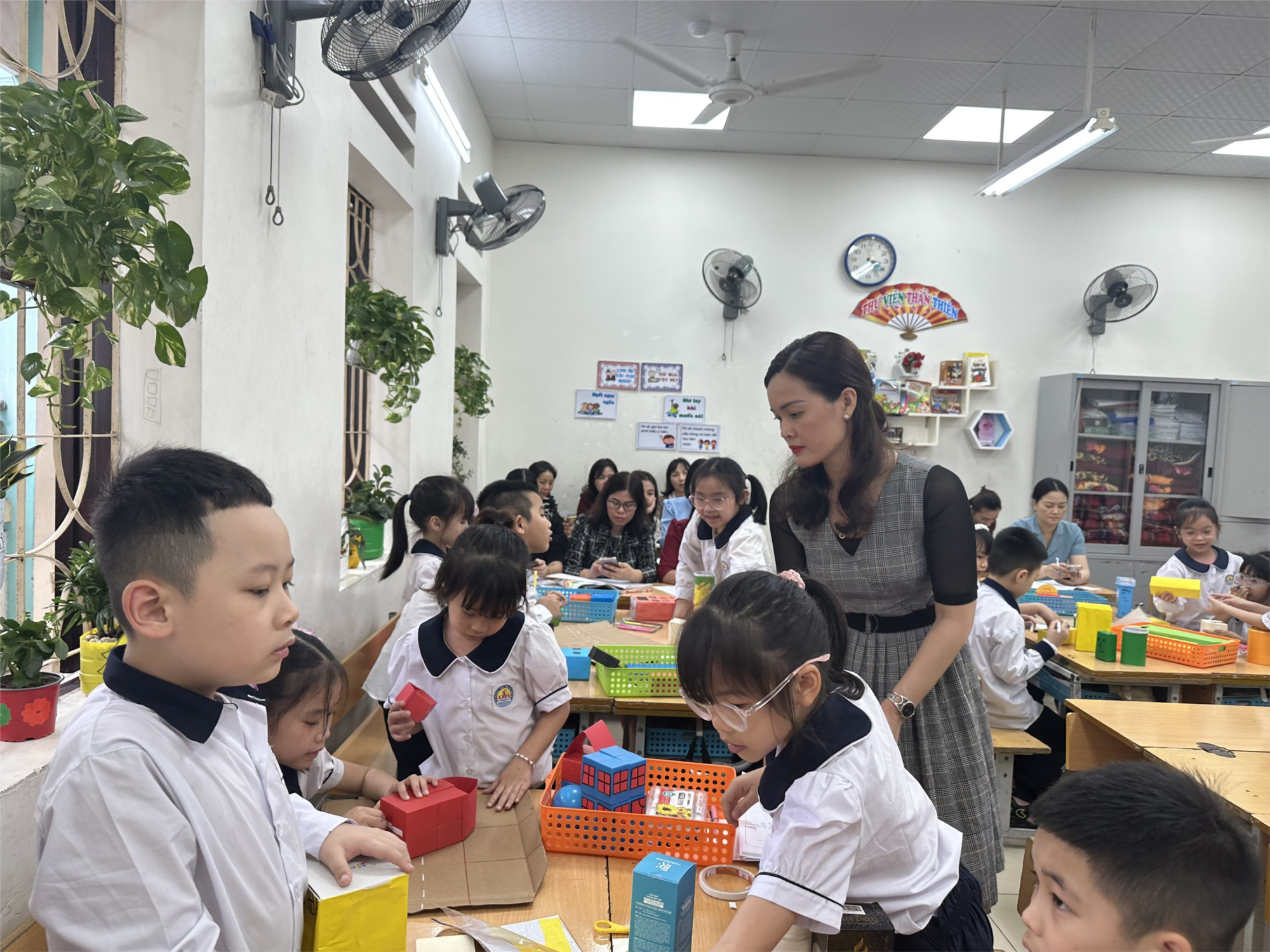 Thực hiện kế hoạch chuyên môn năm học 2023 - 2024, tổ chuyên môn Khối 2 đã thực hiện lên lớp chuyên đề: Tổ chức dạy học bài học STEM lớp 2 thông qua Môn Toán, Bài 9: Trải nghiệm thành phố hình học.