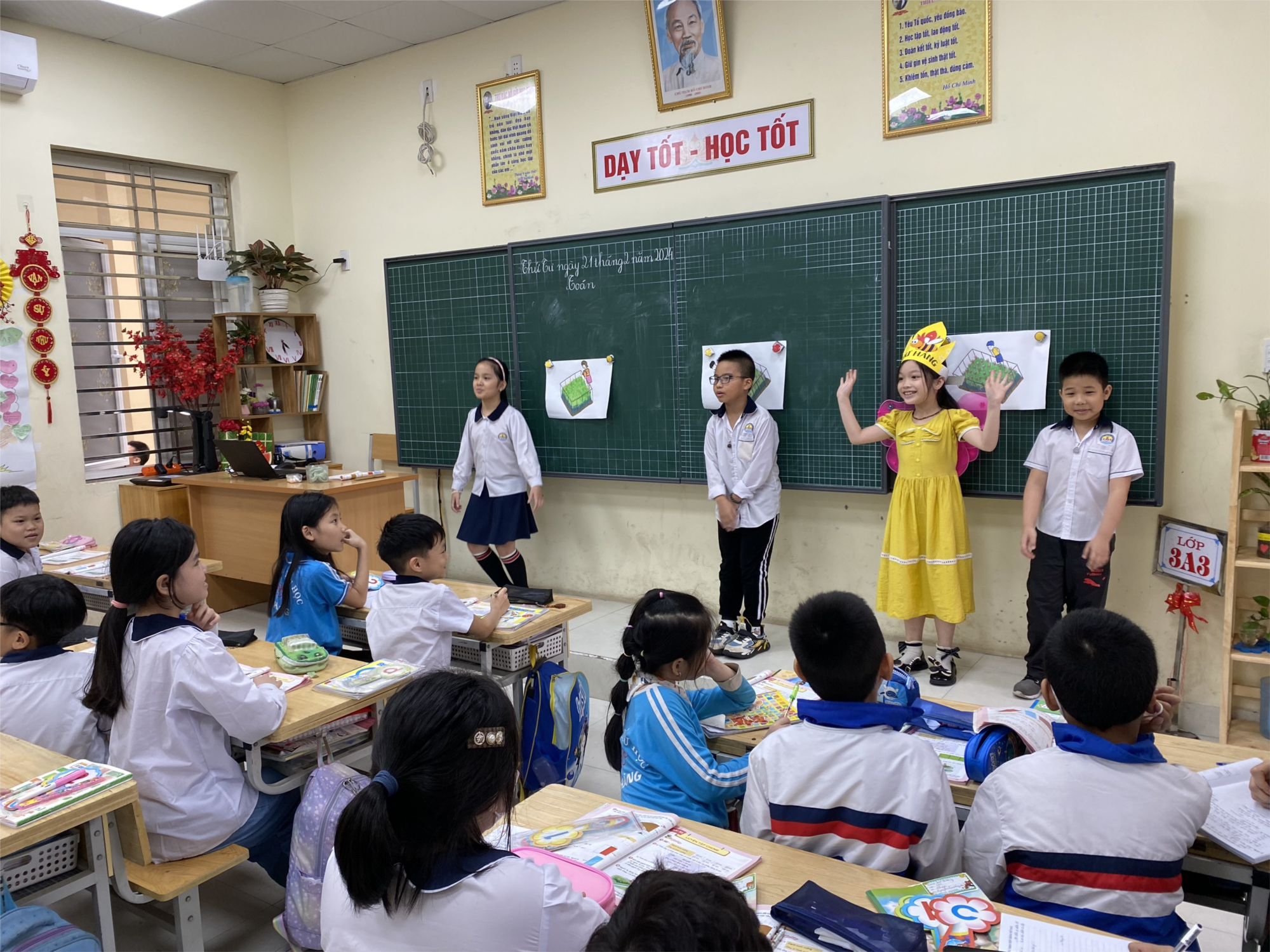 Đến dự chuyên đề có đồng chí Lê Thị Thu Hương – Hiệu trưởng, đồng chí Nguyễn Thị Kim Tuyến - Phó hiệu trưởng nhà trường, cùng toàn thể các đồng chí giáo viên tỏ khối 3. Phần lên lớp minh họa do cô giáo Vũ Thị Nhung và học sinh lớp 3A3 thực hiện.