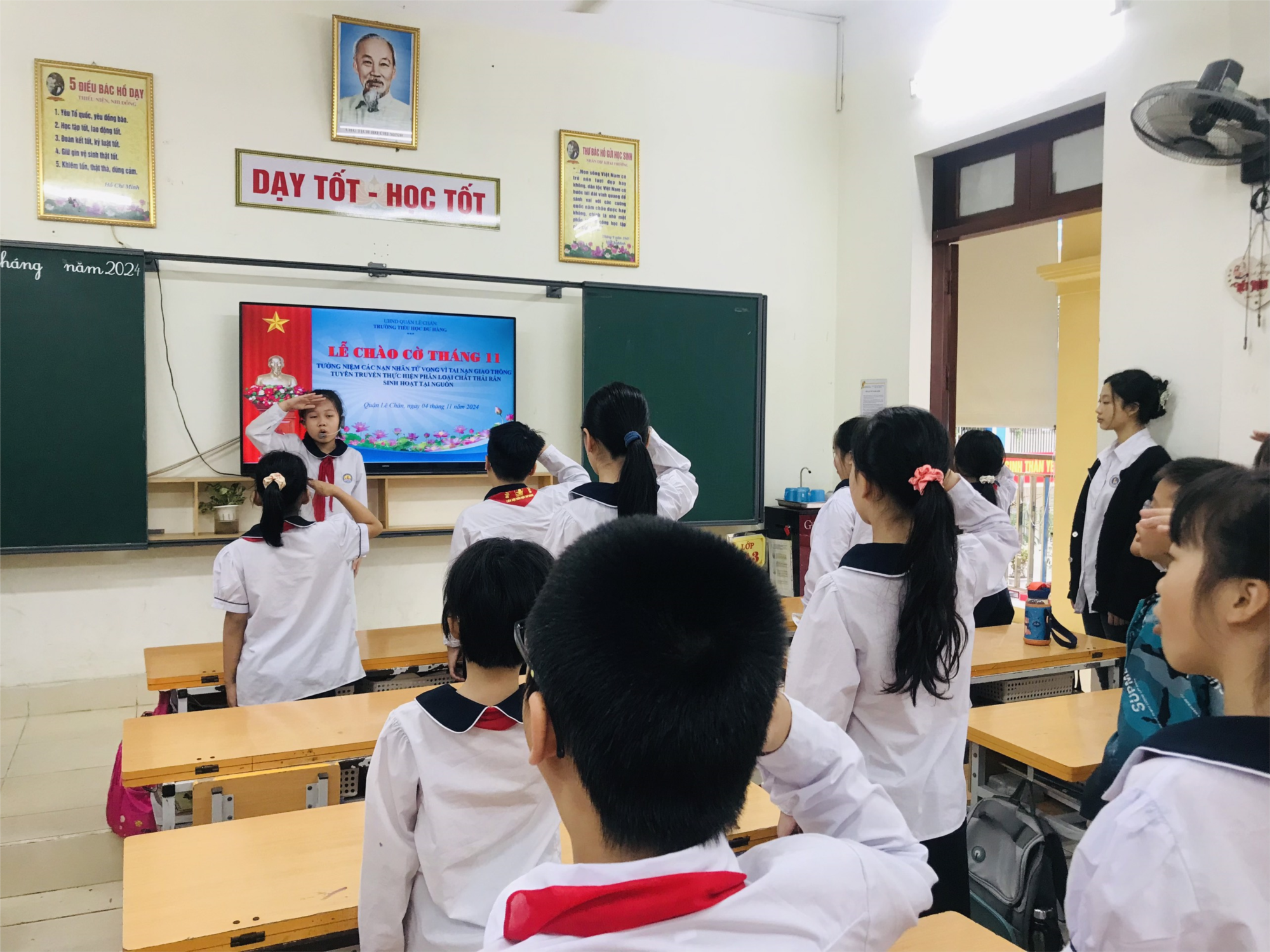 Thực hiện kế hoạch năm học, sáng ngày 04/11/2024, Trường TH Dư Hàng tổ chức lễ chào cờ tháng 11 tại các lớp học.