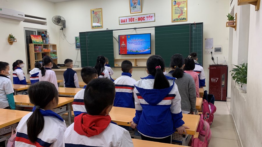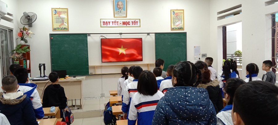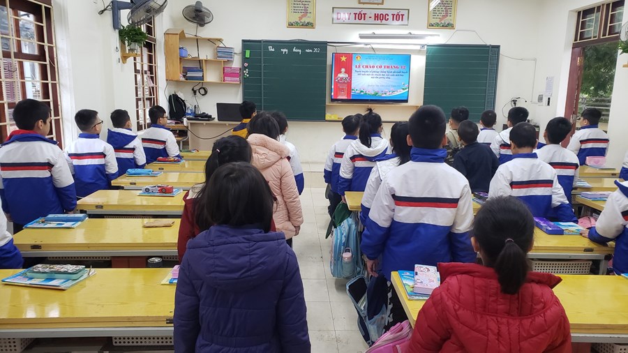 Do thời tiết rét đậm, lễ chào cờ đã được tổ chức tại các lớp học. Tại buổi chào cờ, các cô giáo đã tổng hợp kết quả thi đua tháng 11, tuyên dương các lớp xuất