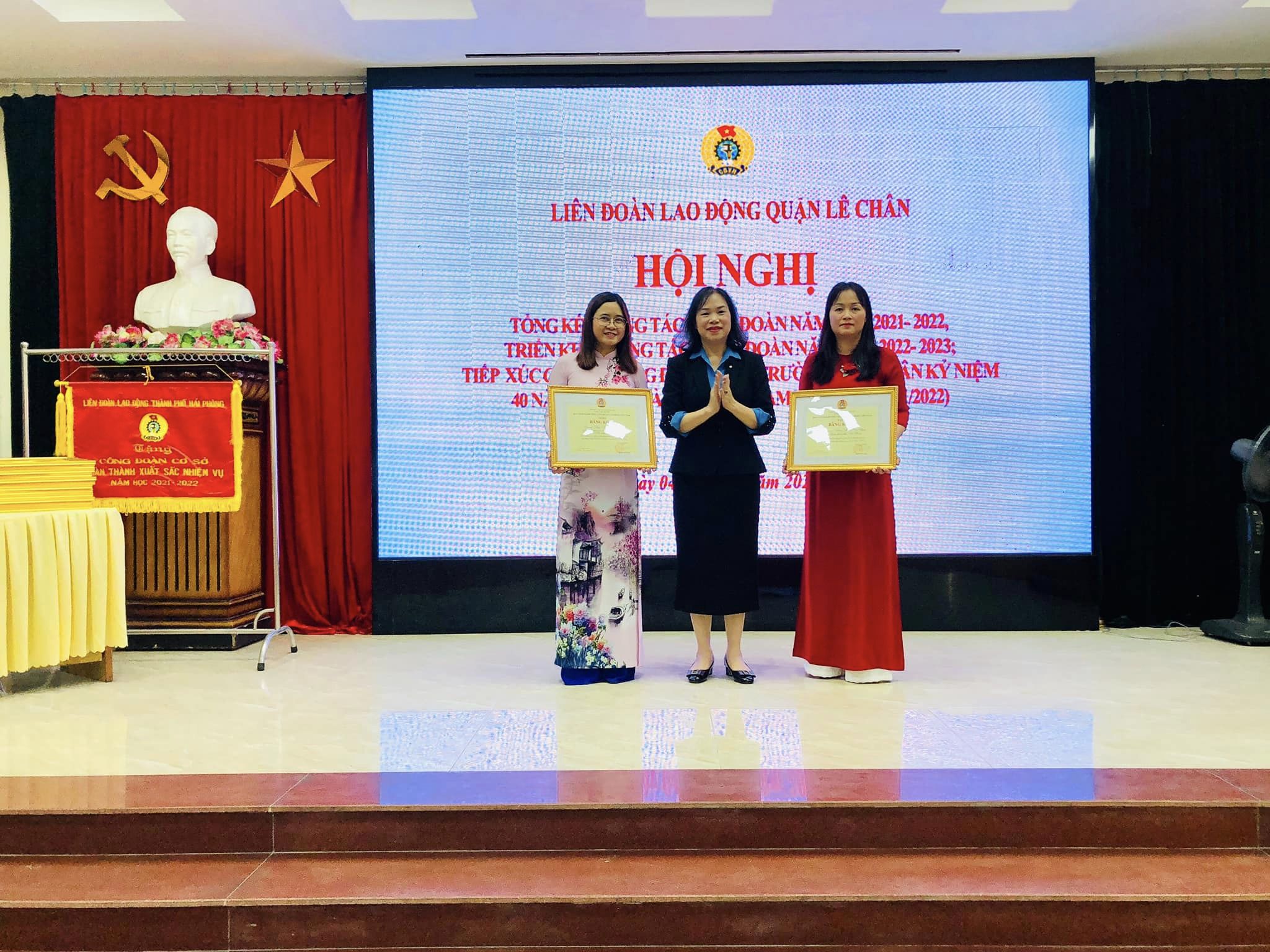 LĐLĐ Quận Lê Chân tặng Giấy khen cho 10 tập thể, 20 cá nhân.