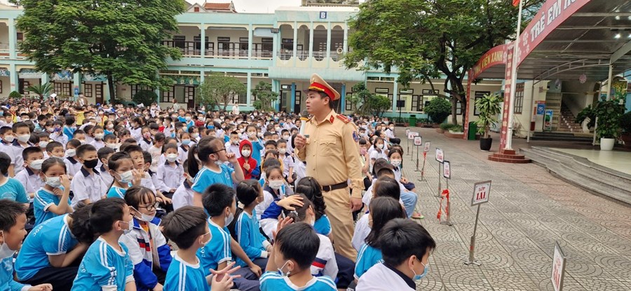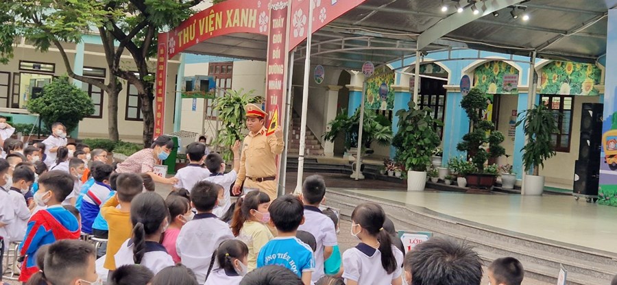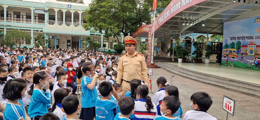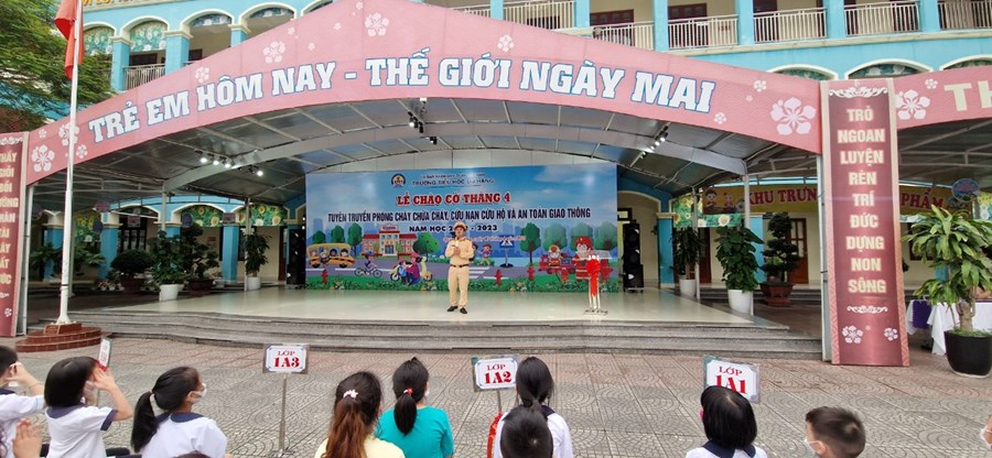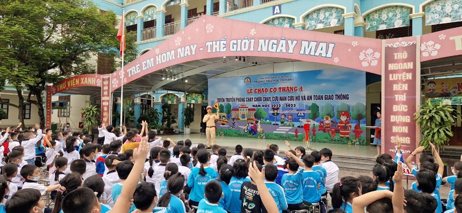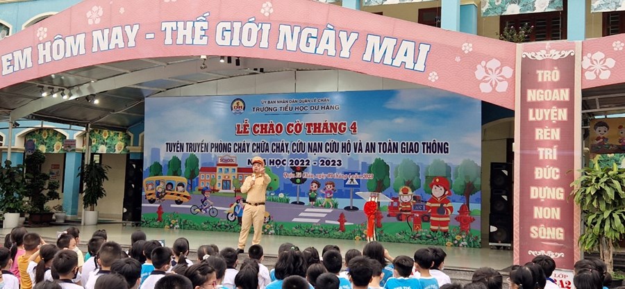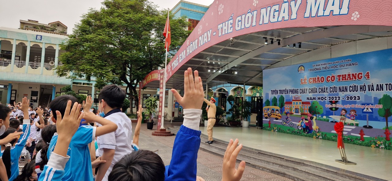 Thực hiện kế hoạch số 49/KH-CALC về việc tuyên truyền luật giao thông đường bộ và luật Phòng cháy, chữa cháy tại các trường học năm 2023, trường Tiểu học dư Hàng phối hợp cùng Công an quận Lê Chân tổ chức buổi tuyên truyền cho các em học sinh.