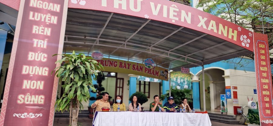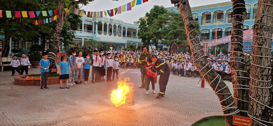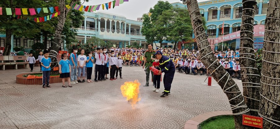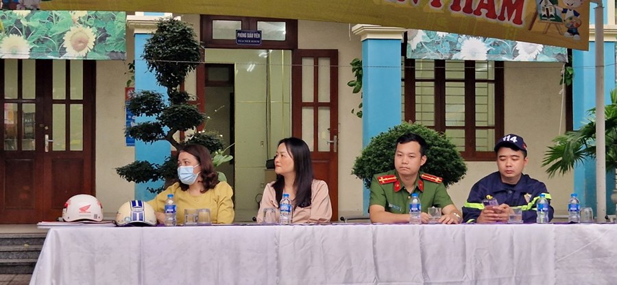 Các em học sinh đã được nghe tuyên truyền về luật giao thông đường bộ, cách đội mũ bảo hiểm đúng cách để đảm bảo an toàn cho gia đình và bản thân. Bên cạnh đó, các em cũng có thêm kiến thức về kĩ năng phòng vệ khi xảy ra đám cháy, tìm hiểu về các loại bình cứu hoả cho từng môi trường cháy và thực hành sử dụng bình cứu hoả chữa cháy.